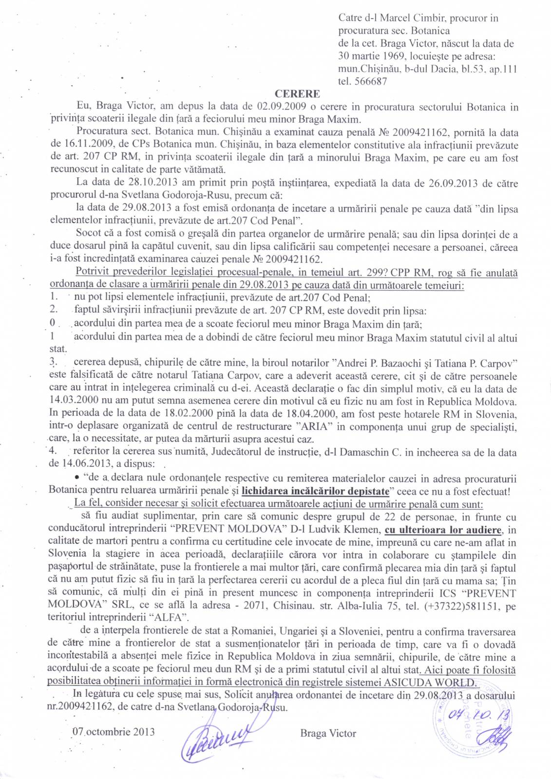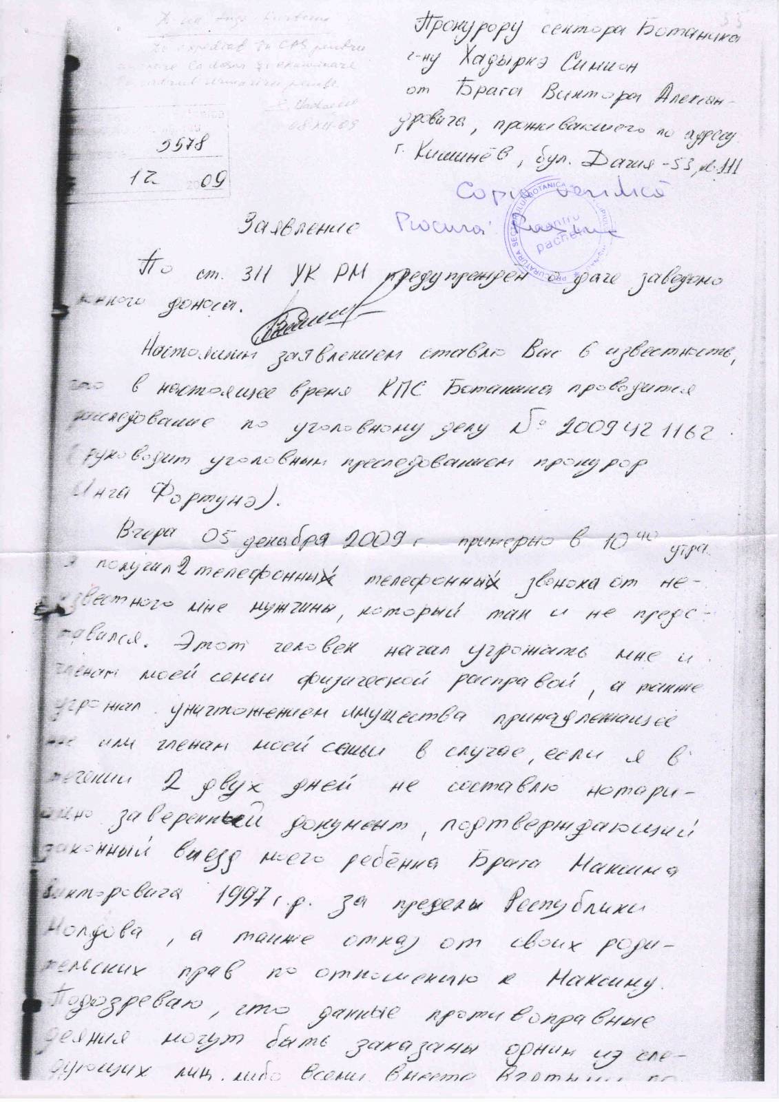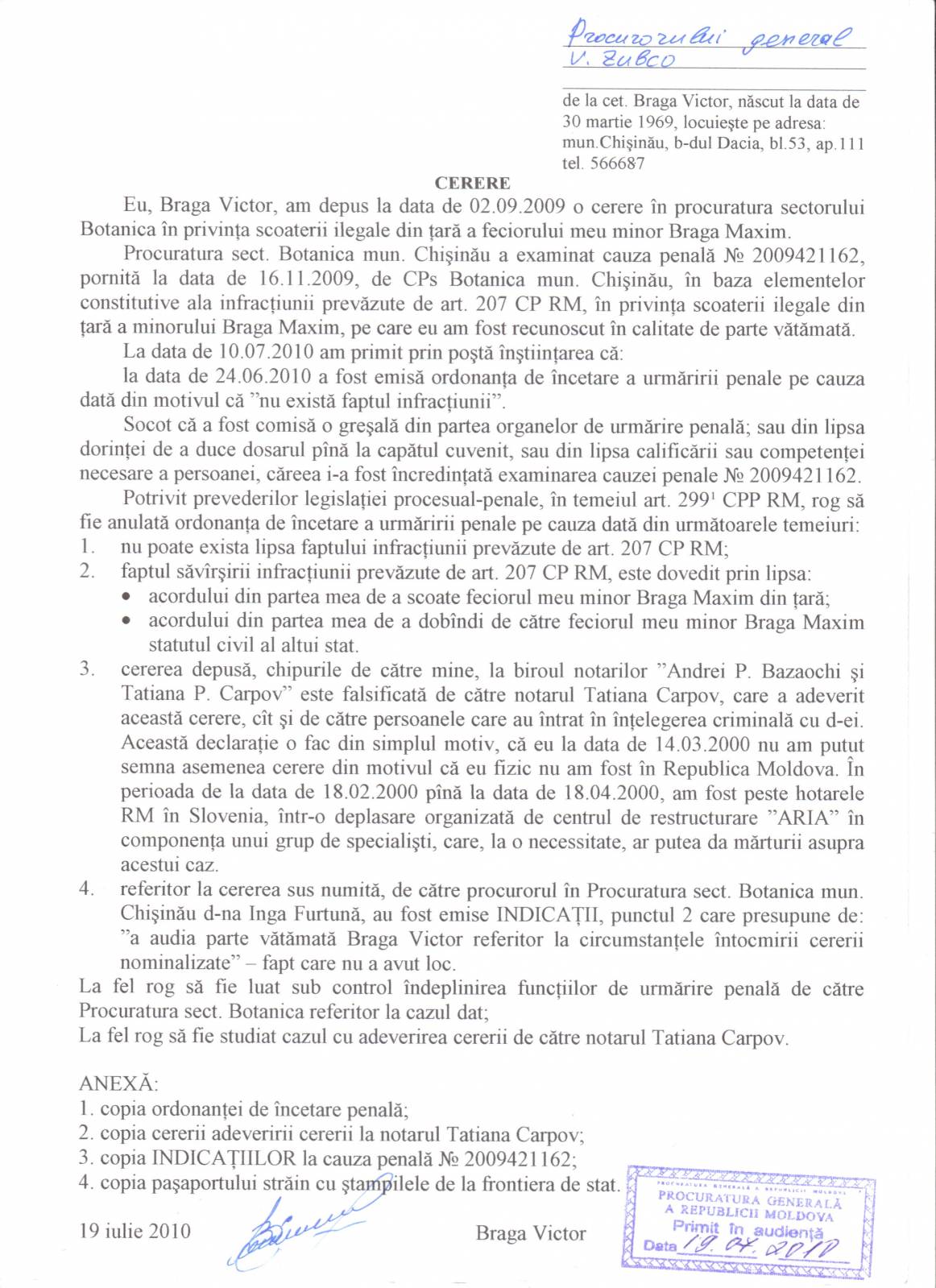 Refuzul Procuraturii de a porni un Dosar Penal împotriva acţiunilor ilegale ale notarului T Carpov [164]