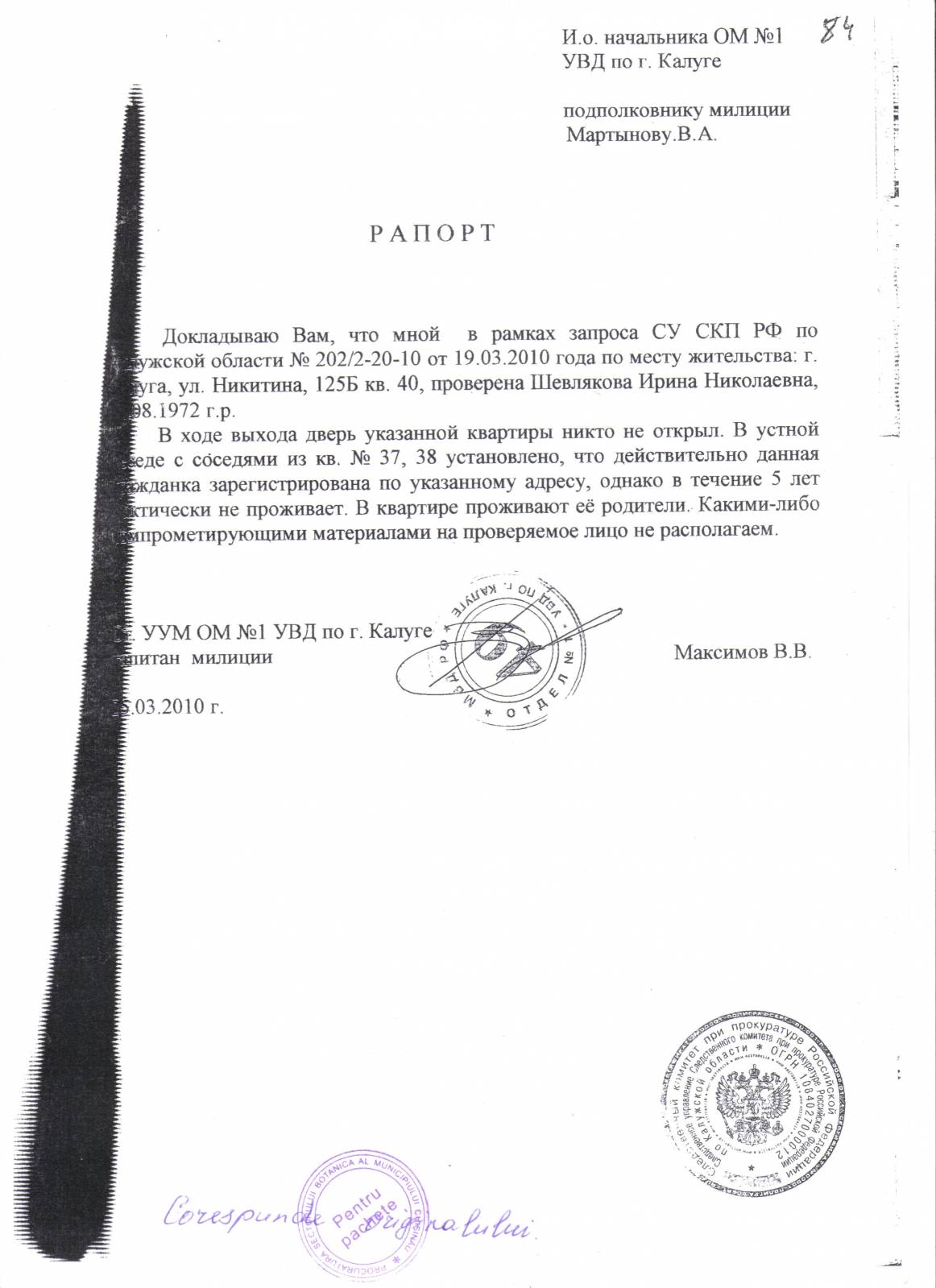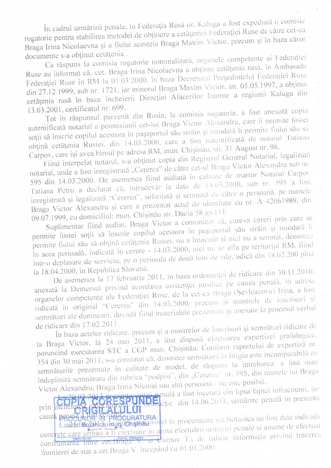 Refuzul Procuraturii de a porni un Dosar Penal împotriva acţiunilor ilegale ale notarului T Carpov [164]