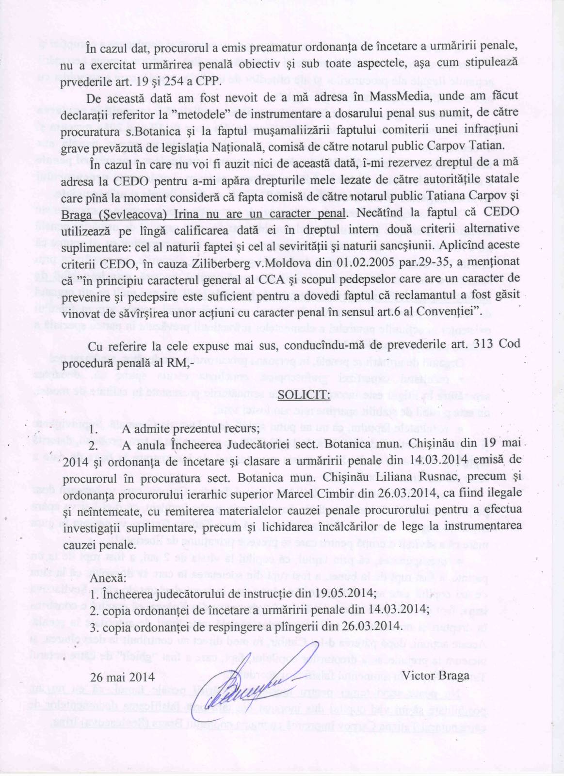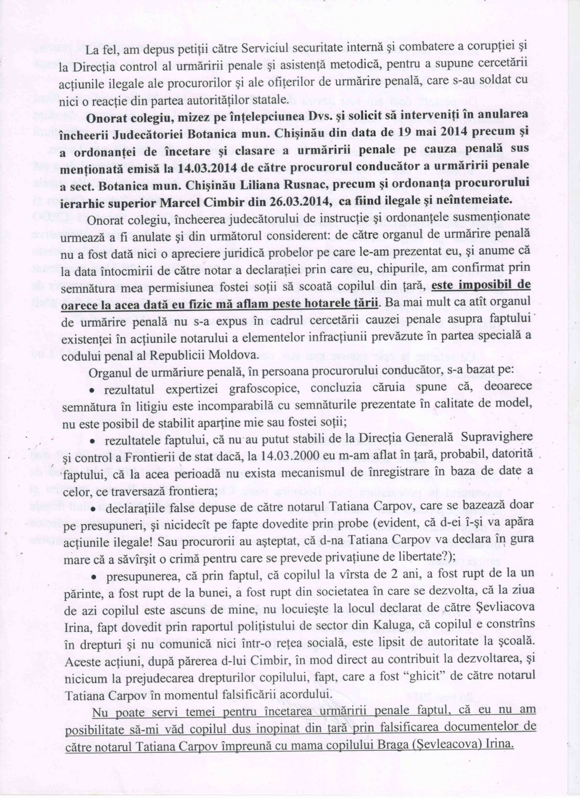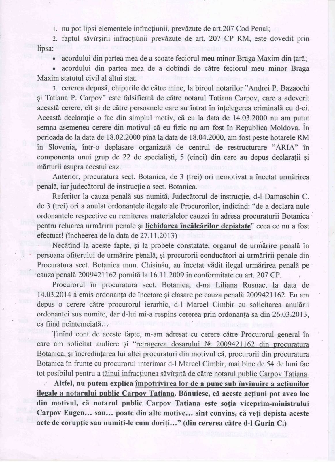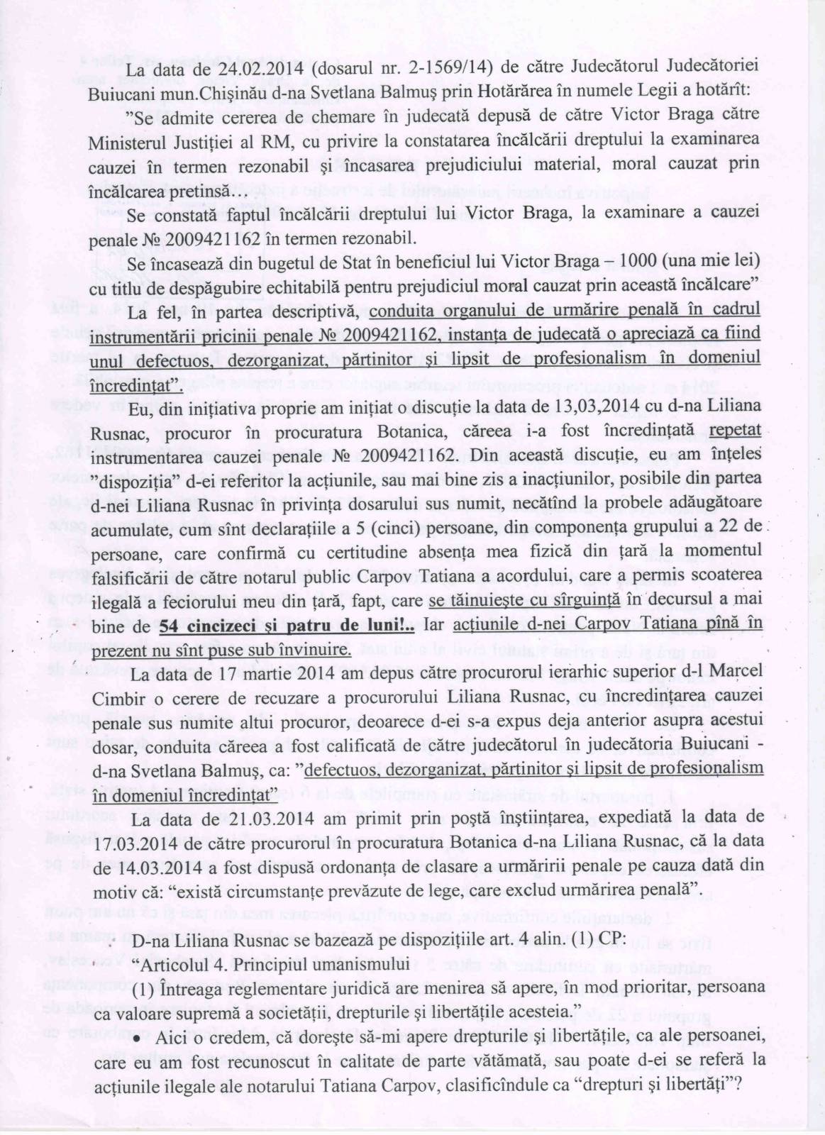 Refuzul Procuraturii de a porni un Dosar Penal împotriva acţiunilor ilegale ale notarului T Carpov [164]