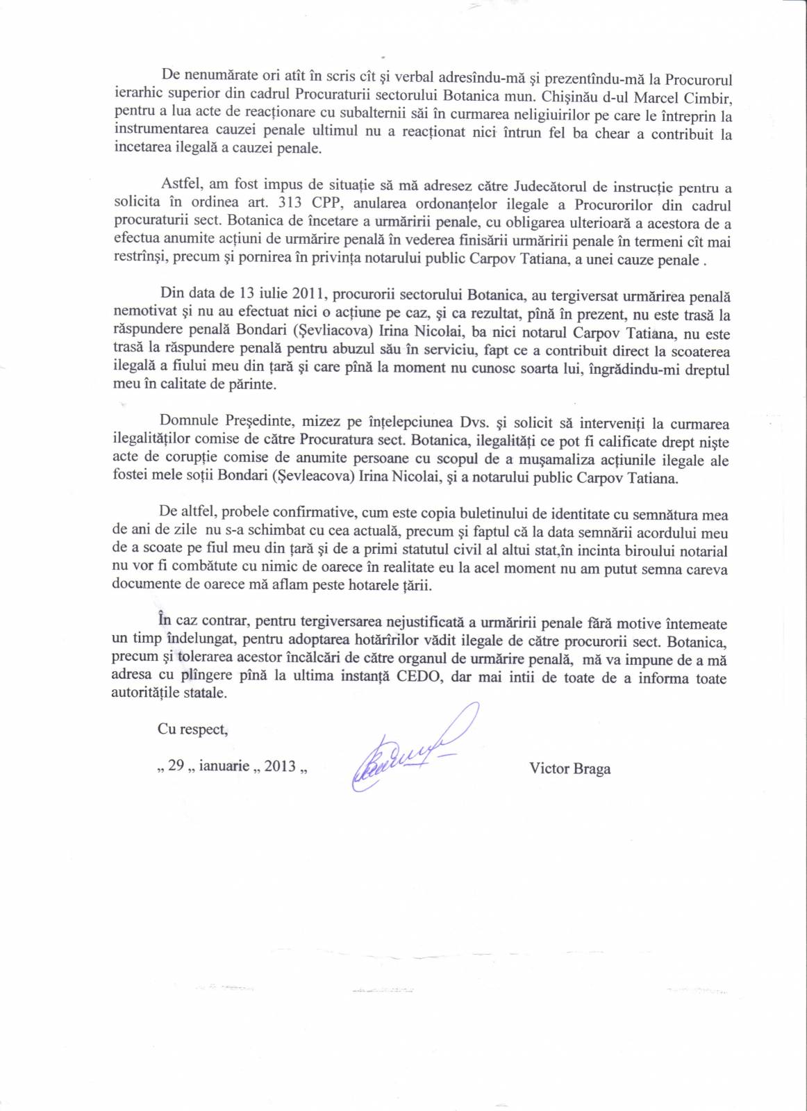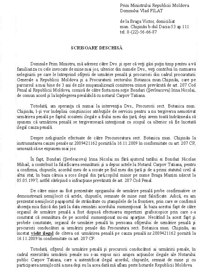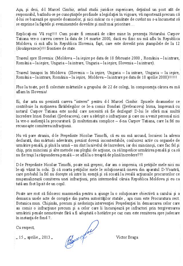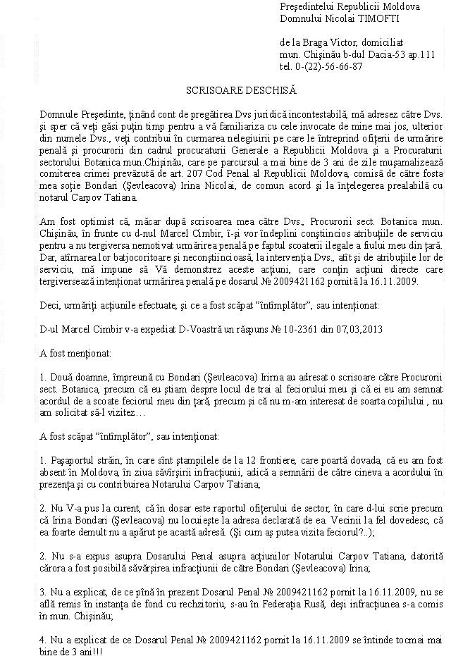 Refuzul Procuraturii de a porni un Dosar Penal împotriva acţiunilor ilegale ale notarului T Carpov [164]