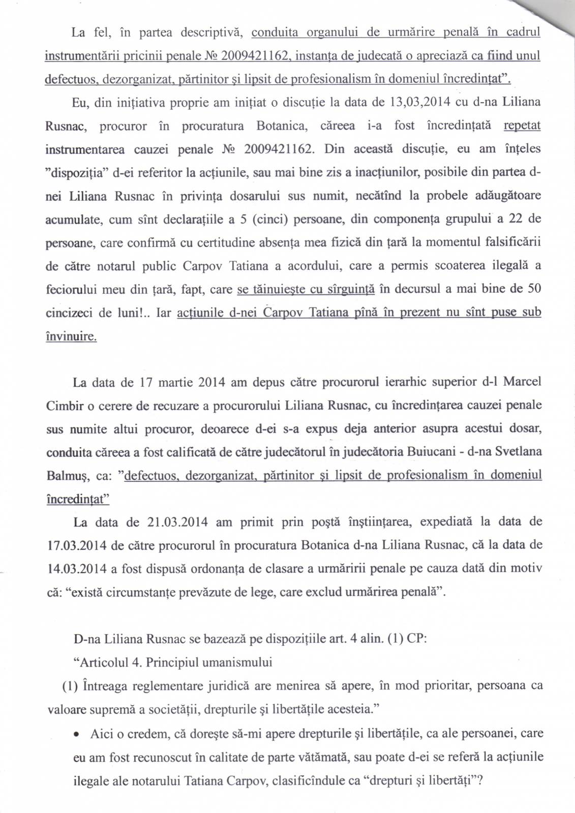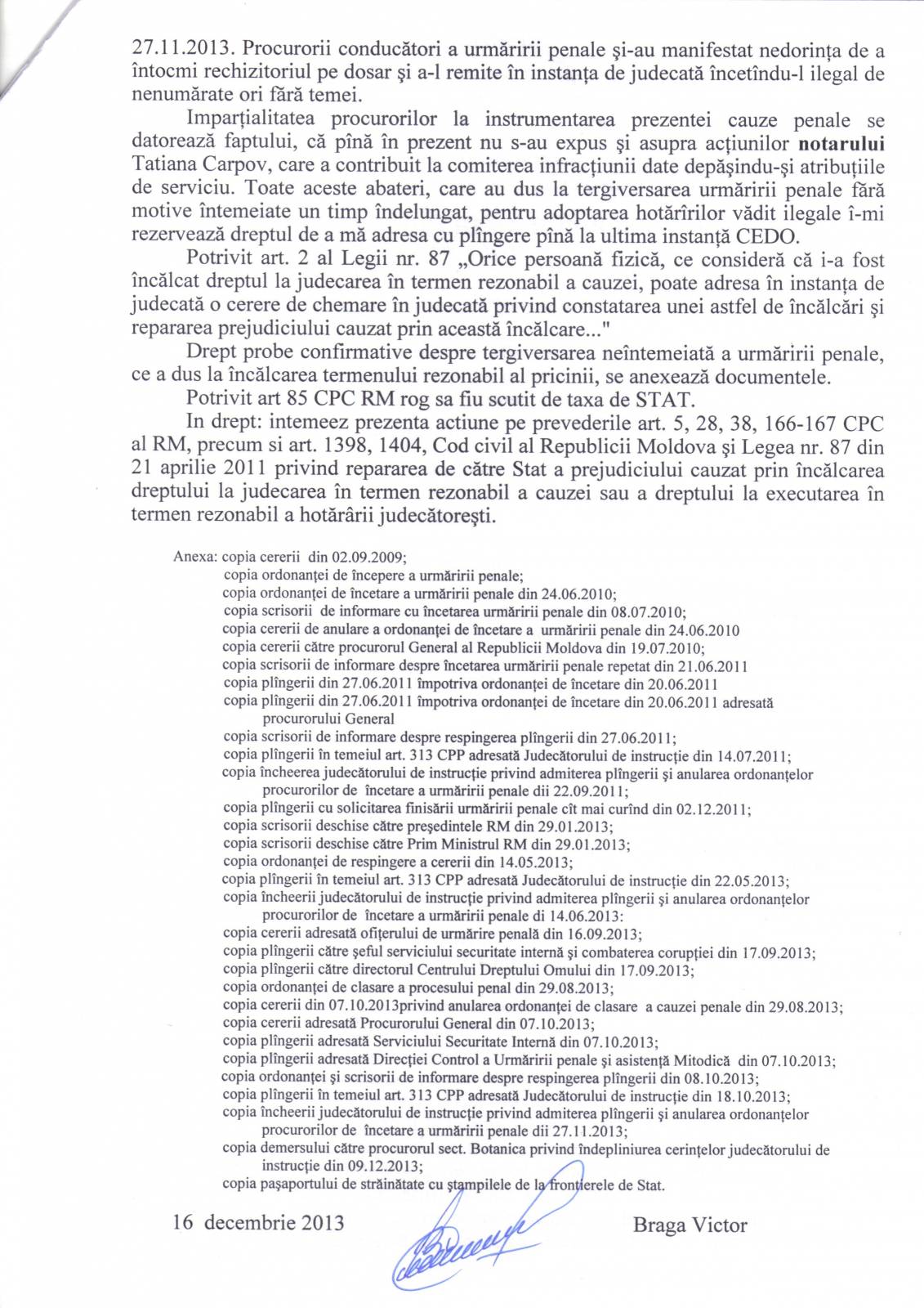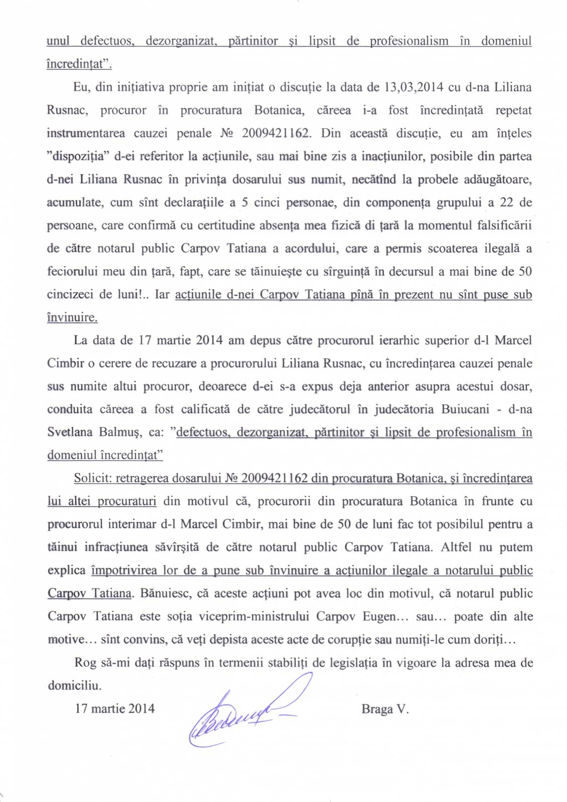 Refuzul Procuraturii de a porni un Dosar Penal împotriva acţiunilor ilegale ale notarului T Carpov [164]