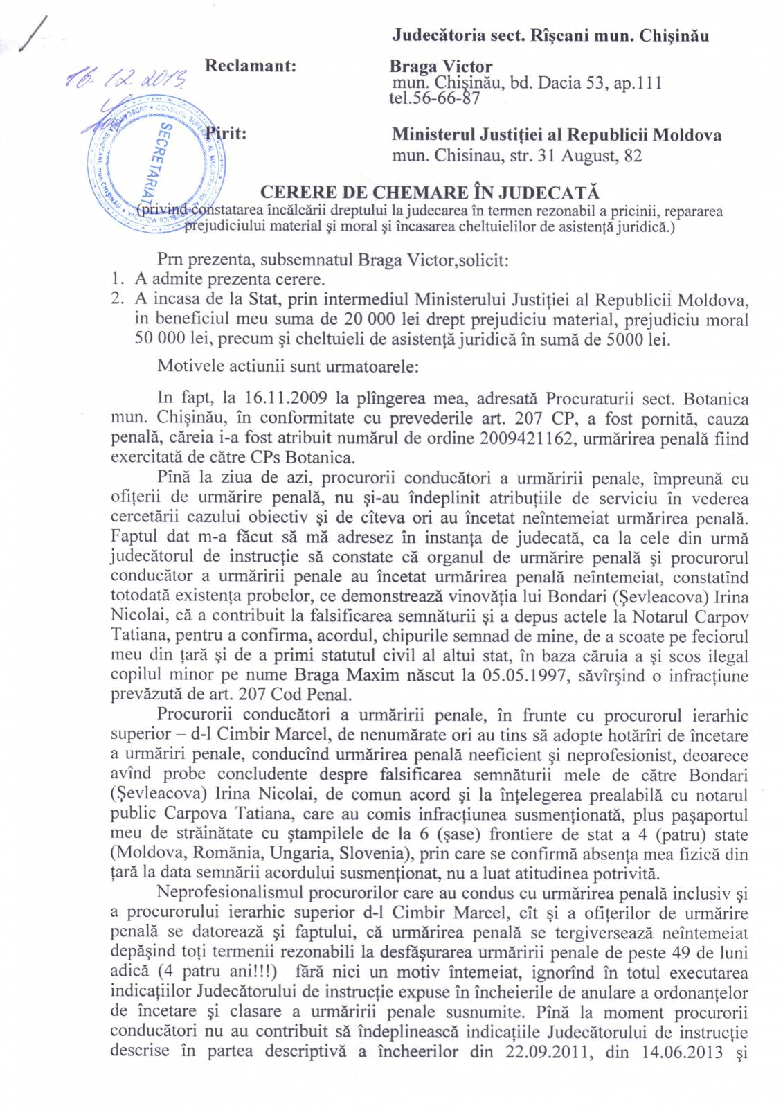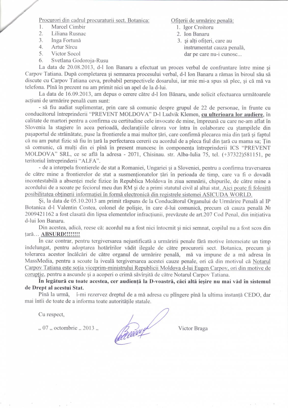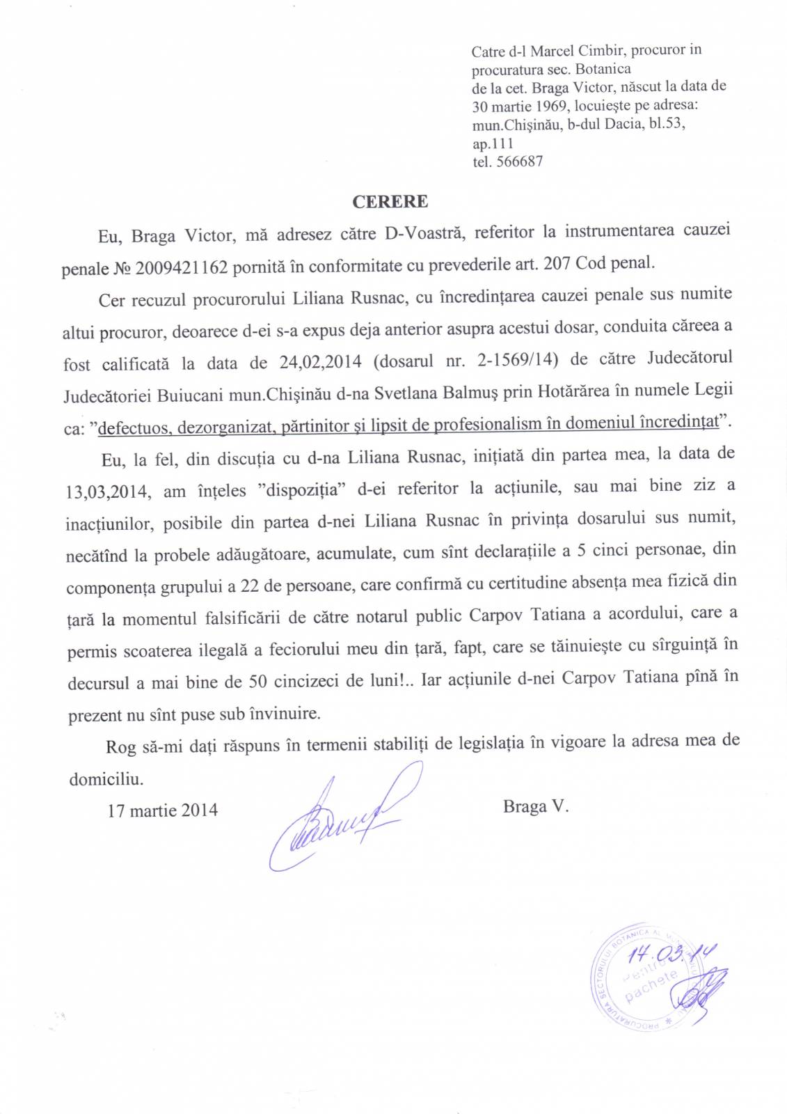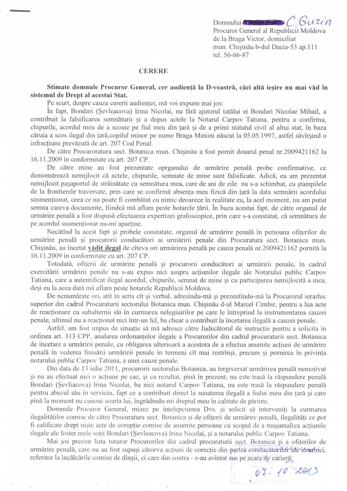 Refuzul Procuraturii de a porni un Dosar Penal împotriva acţiunilor ilegale ale notarului T Carpov [164]