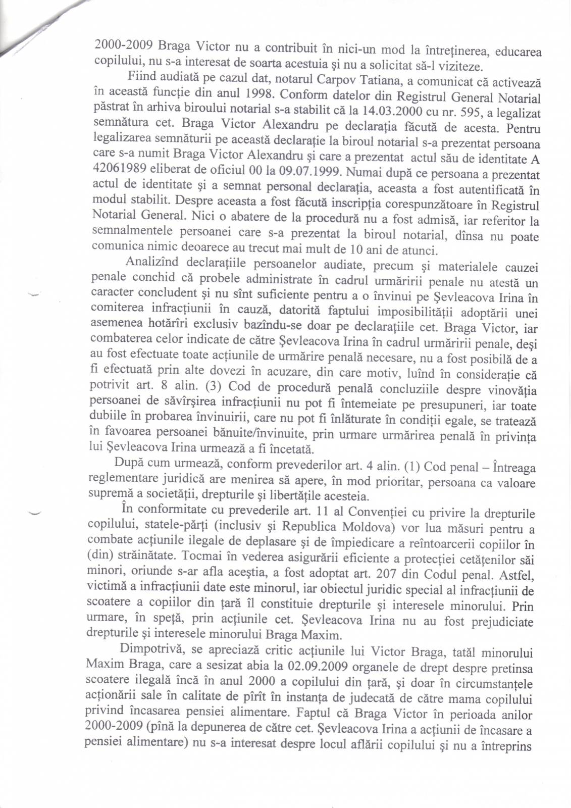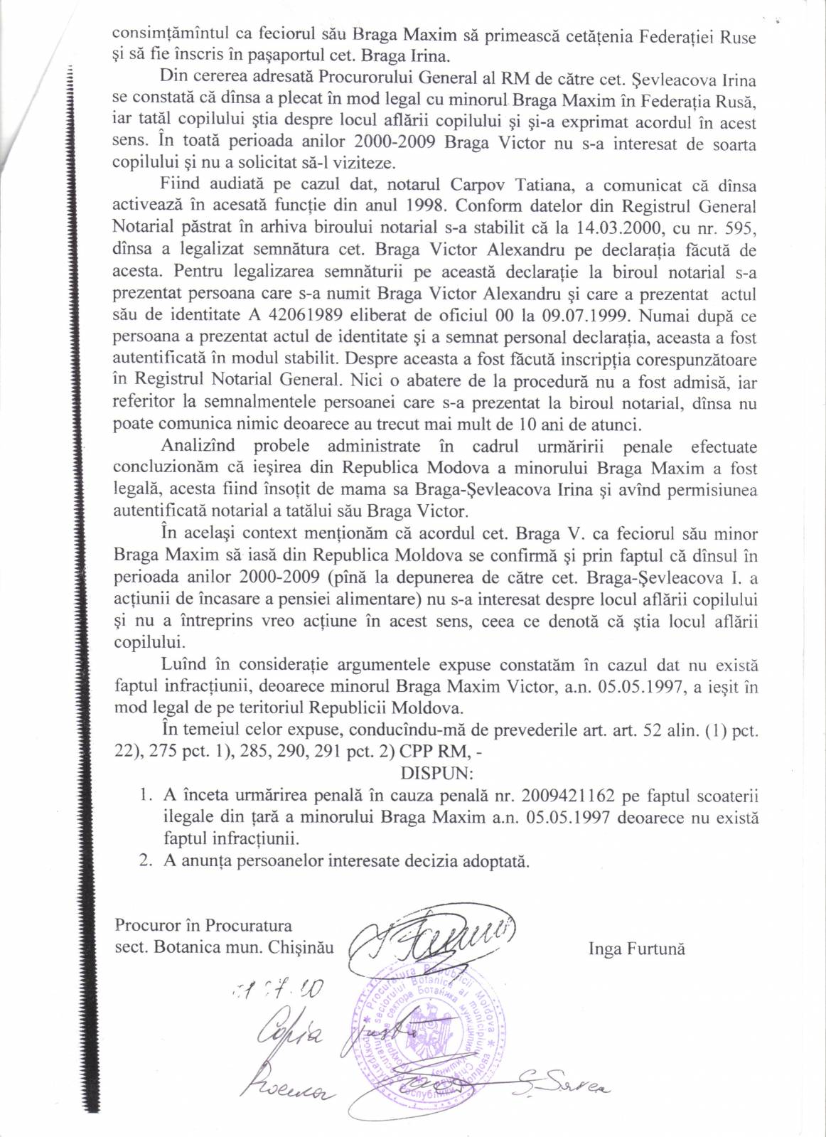 Refuzul Procuraturii de a porni un Dosar Penal împotriva acţiunilor ilegale ale notarului T Carpov [164]
