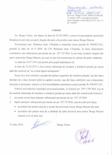 Acasă » Album Foto » Materialele Dosarului Penal № 2009421162 » Cerere către Procurorul s.Botanica 16,07,2010