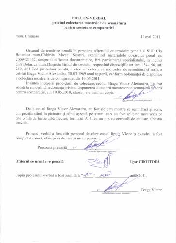 Proces verbal privind colectarea mostrelor de semnătură pentru cercetarea comparativă 19,05,2011