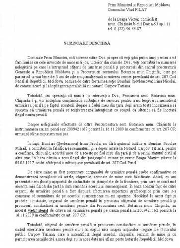 Acasă » Album Foto » Materialele Dosarului Penal № 2009421162 » Scrisoare deschisă Prim Ministrului RM 1
